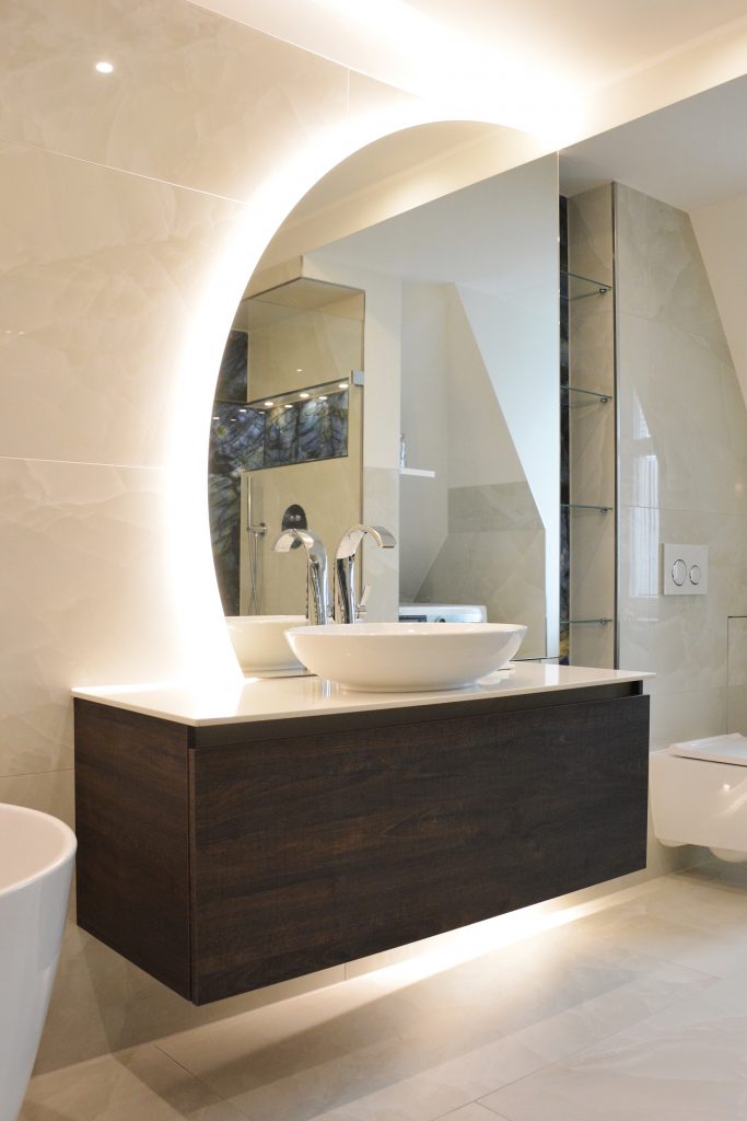 Licht spielt eine zentrale Rolle für die Raumwirkung. Mehrstufige Beleuchtungskonzepte mit direktem und indirektem Licht schaffen Tiefe, Struktur und Stimmung. Dimmbare Lichtquellen ermöglichen den Wechsel zwischen funktionalem Arbeitslicht und entspannter Abendatmosphäre. Farblich darf das Bad 2026 wieder mutiger sein und Akzente setzen, ohne dominant zu wirken. Entscheidend ist die harmonische Abstimmung aller Elemente – von Wandflächen über Textilien bis hin zu Armaturen. So entsteht ein Raum, der nicht nur modern wirkt, sondern emotional trägt.